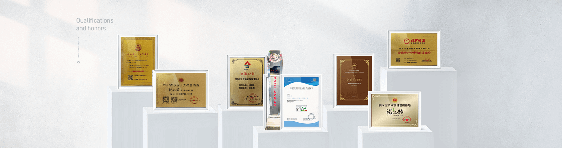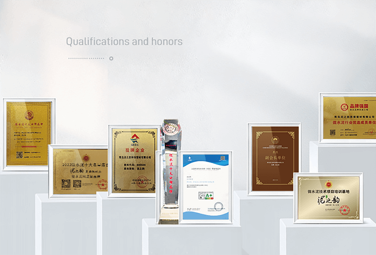 2022年,成為微水泥團體標準起草單位;榮獲2022年微水泥十大口碑品牌;榮獲2022年微水泥十大品牌;榮獲品牌強國微水泥行業優選成員單位;